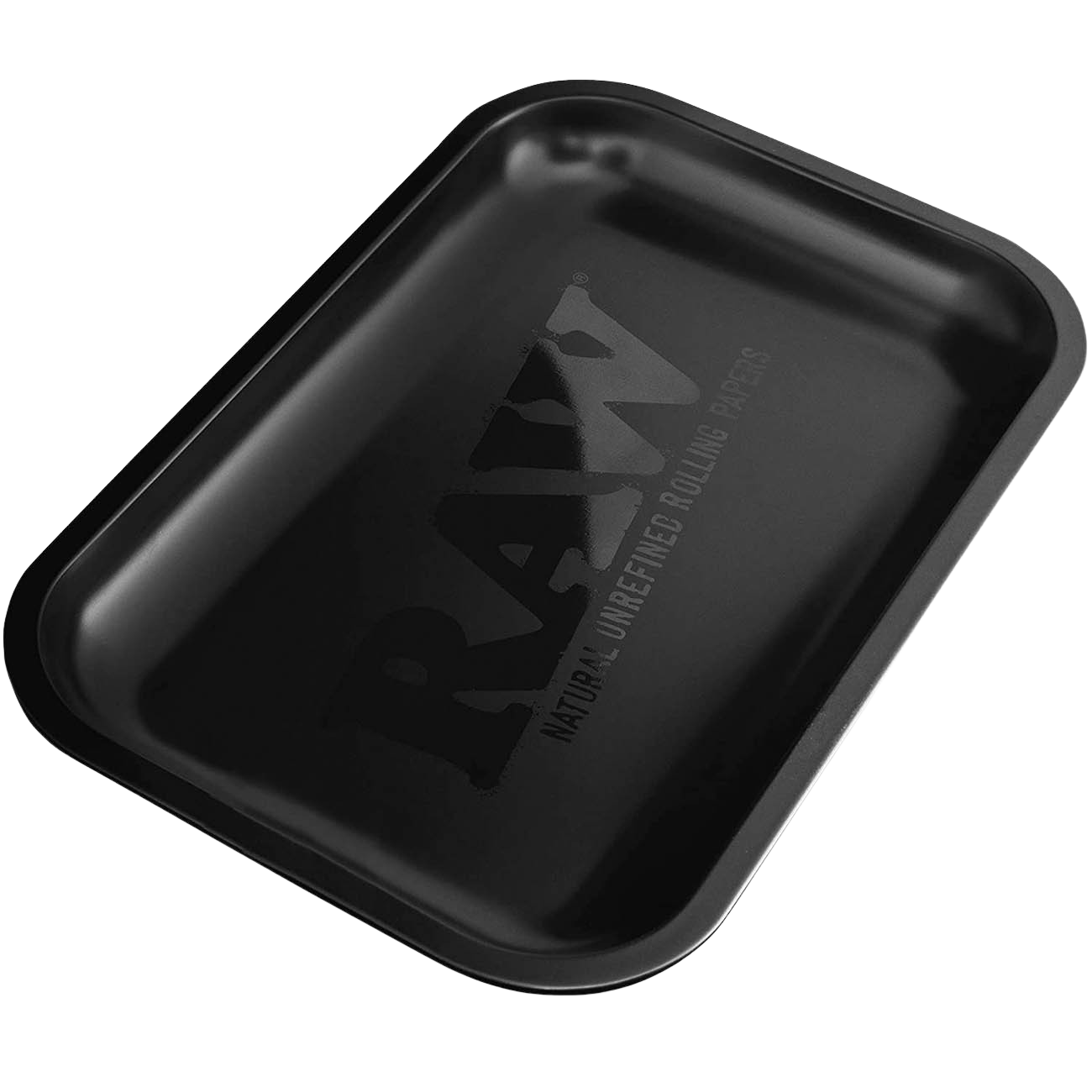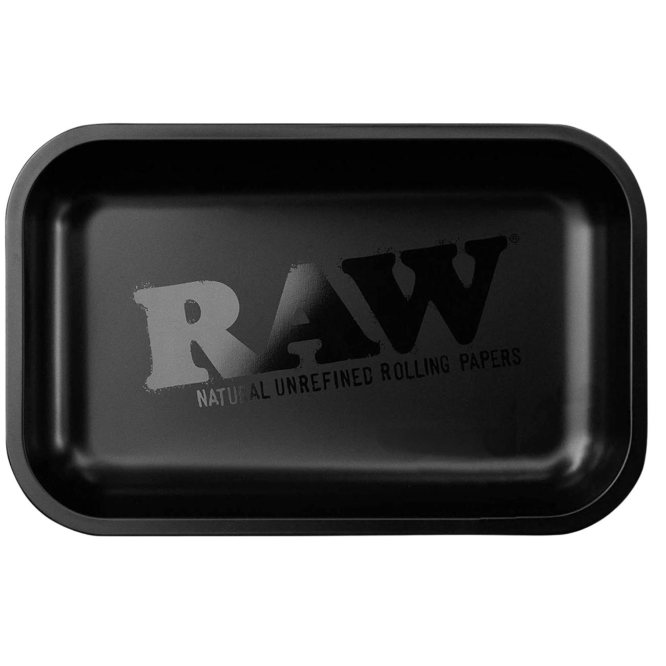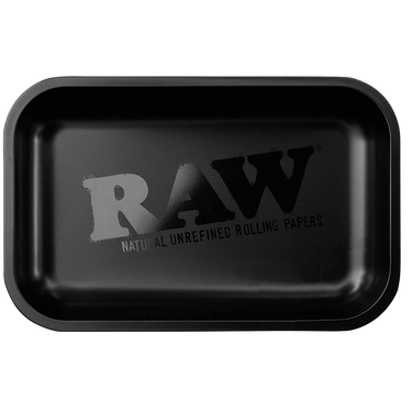 Besonders cooles Rolling Tray der spanischen Kultmarke RAW® aus Metall in mattem Schwarz. Da auch das RAW®-Logo schwarz ist, wirkt diese Bauunterlage sehr edel.