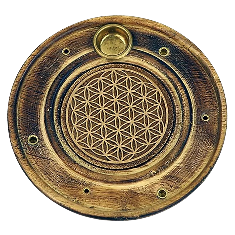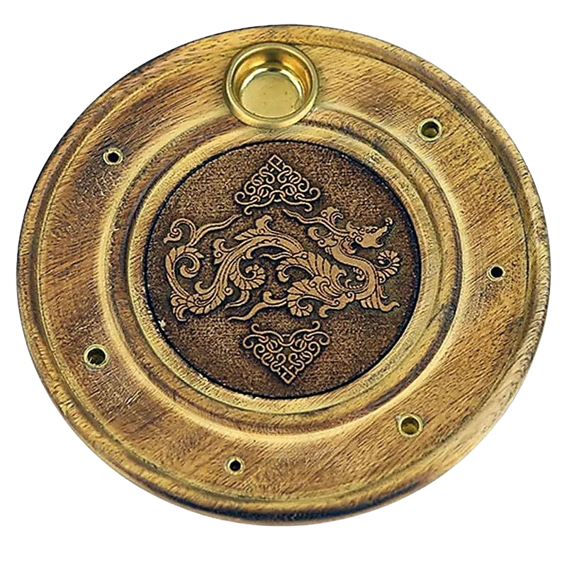 Räucherstäbchen- und Weihrauchkegelhalter mit kunstvoll geschnitzter Dekoration. Geeignet für Räucherkegel und dünnere Räucherstäbchen (z.B. indische und japanische Räucherstäbchen).