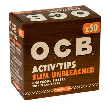 OCB Activ-Tips Slim Aktivkohlefilter ungebleicht mit Keramikkappen zum Eindrehen in Selbstgedrehte für kühlen, trockenen Rauch.