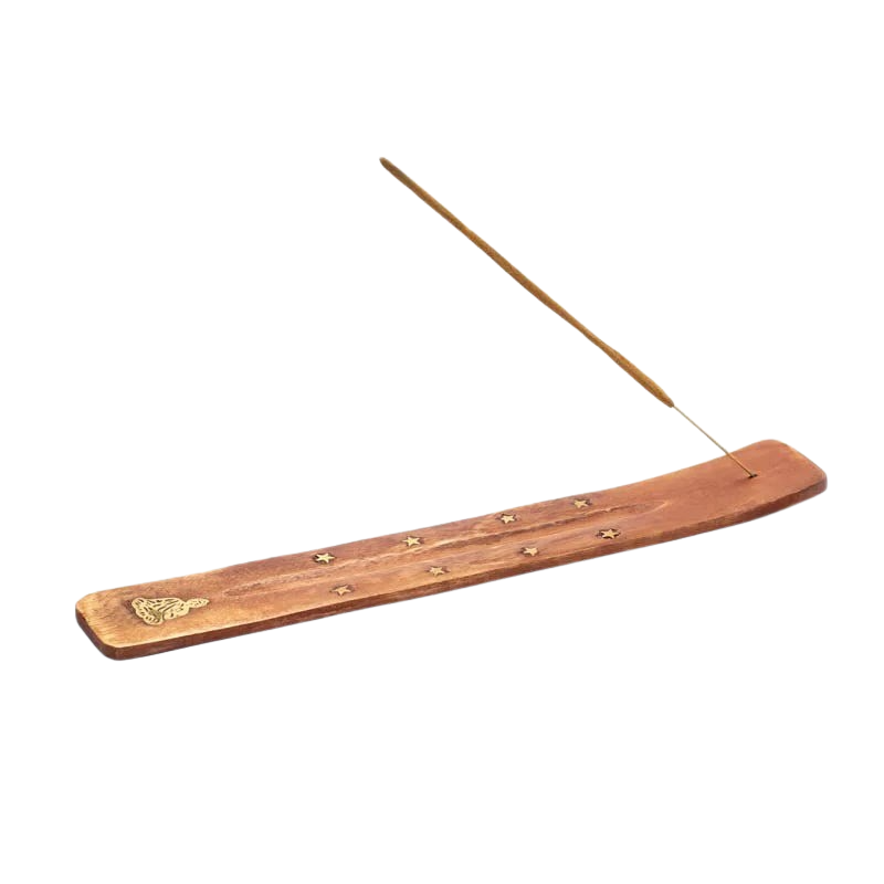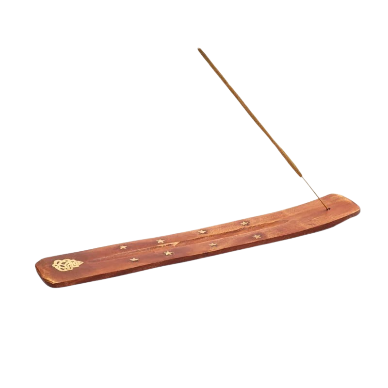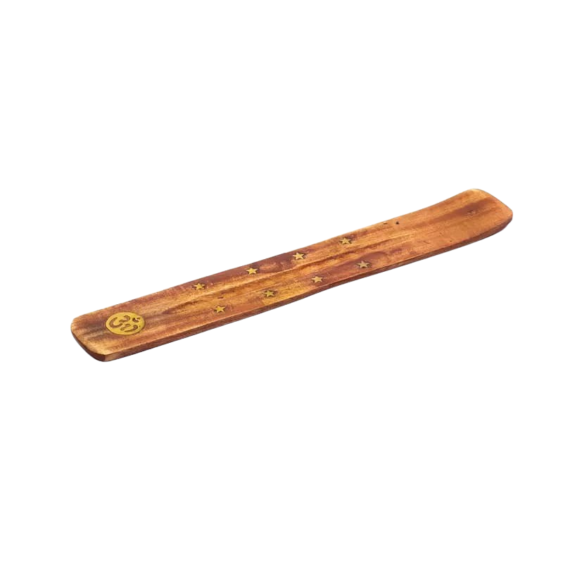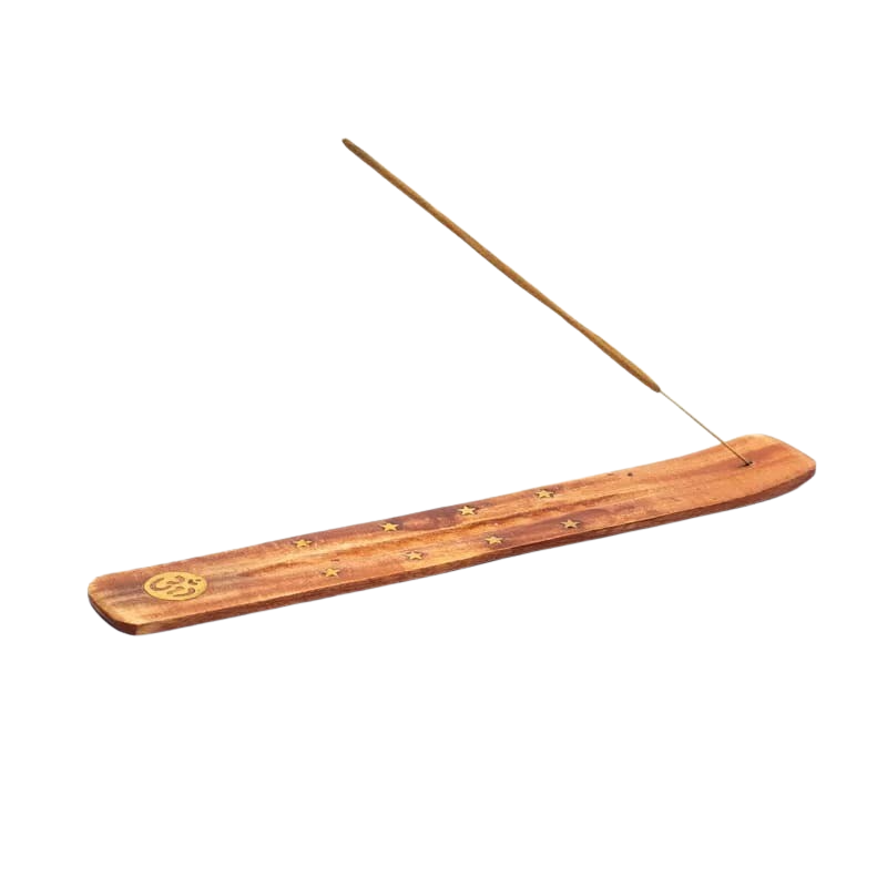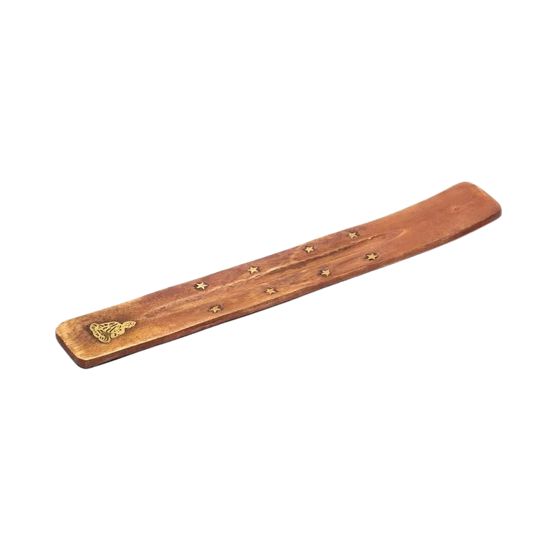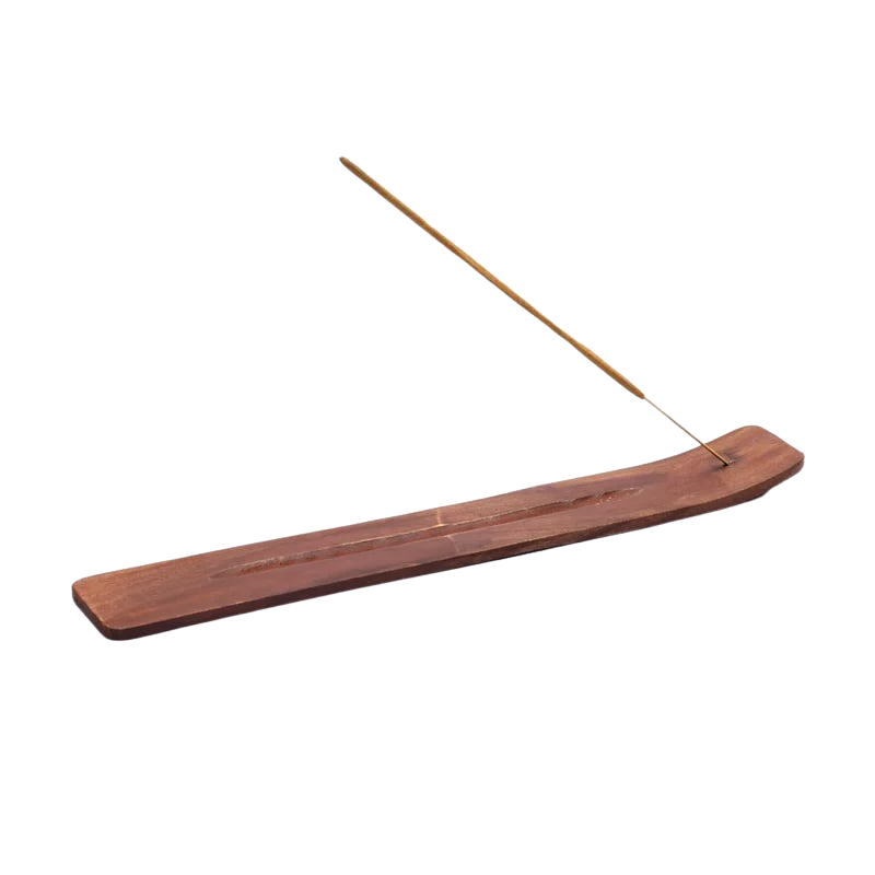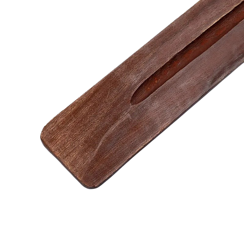 Länglicher Räucherstäbchenhalter aus Holz zum sauberen und unkomplizierten Abbrennen von Räucherstäbchen.