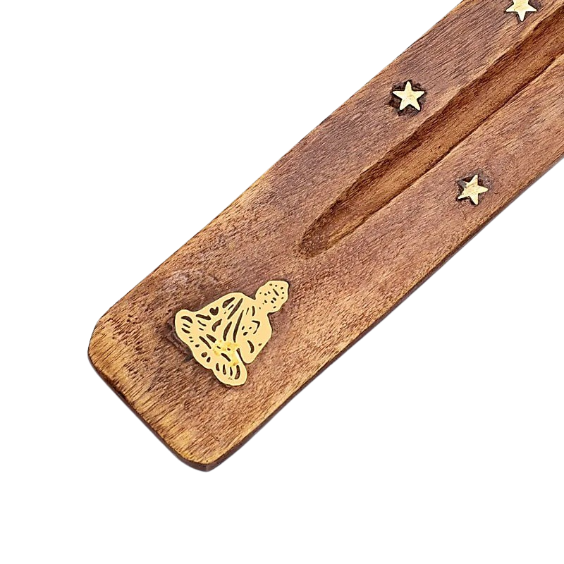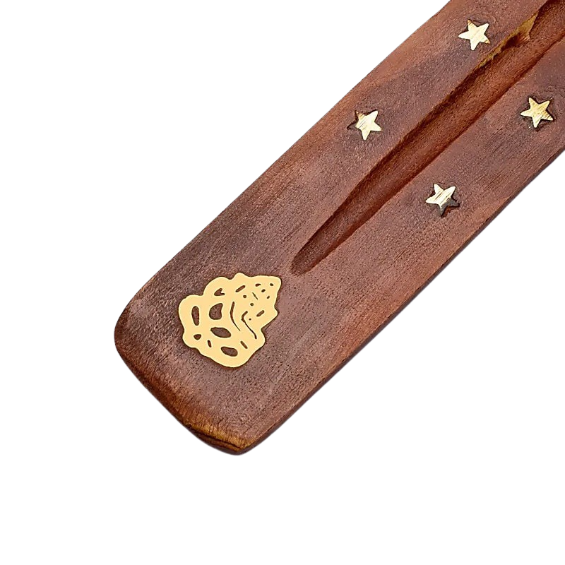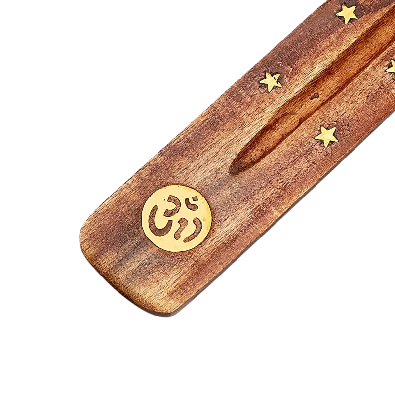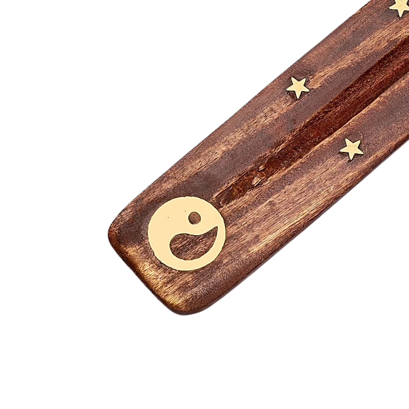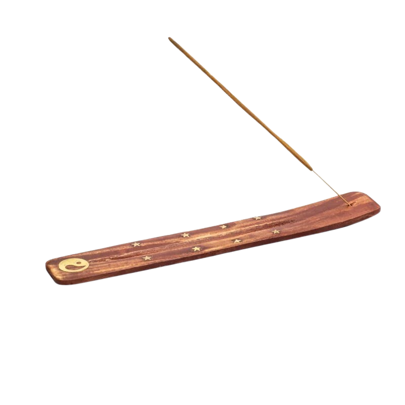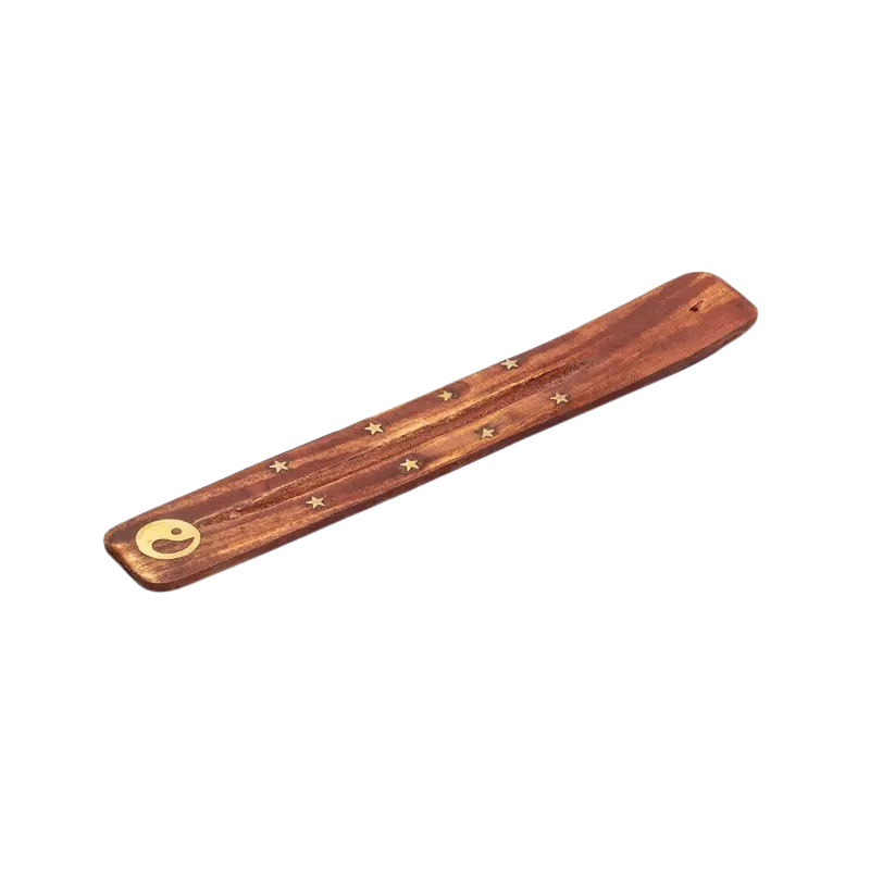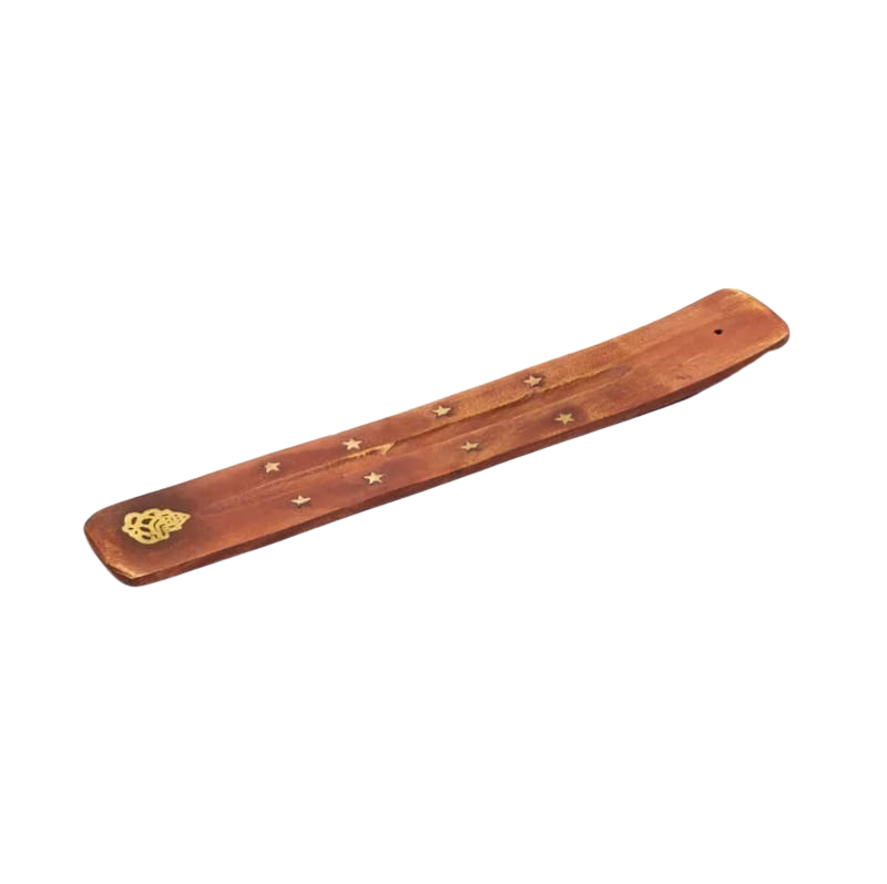 Länglicher Räucherstäbchenhalter aus Holz zum sauberen und unkomplizierten Abbrennen von Räucherstäbchen.